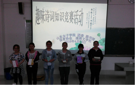 最美诗词,芬芳女院。4月19日,在第21个世界读书日来临前夕,由团委、图书馆主办,读者协会、清照文学社共同承办的“趣味诗词知识竞赛”活动在合班楼502成功举办,来自全校的40多名同学参与了这个活动。