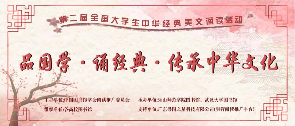 为深入贯彻习近平新时代中国特色社会主义思想和党的十九大精神,落实中共中央办公厅、国务院办公厅印发的《关于实施中华优秀传统文化传承发展工程的意见》,响应教育部、国家语委研究制定的《中华经典诵读工程实施方案》,加强中华优秀传统文化的弘扬和传播,通过诵读国学经典,帮助大学生亲近国学精粹,提升个人文化素养,中国图书馆学会阅读推广委员会拟举办第二届大学生中华经典美文诵读活动。