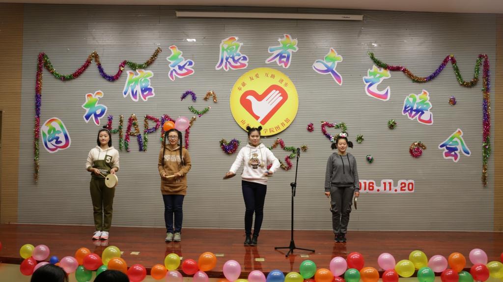 为答谢志愿者同学们长期以来对图书馆工作的支持和厚爱,值此2016年岁末之际,图书馆于11月20日晚在图书馆C座一楼报告厅隆重举办了一场盛况空前的志愿者文艺晚会,图书馆全体员工与200多名志愿者同学们欢聚一堂,共飨文艺盛宴。