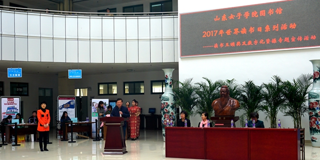 4月20日下午,“阅读让我们的世界更丰富——2017年世界读书日系列活动之颁奖及数字化资源专题宣传活动”在我校图书馆A区大厅隆重举行。学校副校长贺兴利出席活动。工会、学生处、校友办等部门相关负责人及同方知网(北京)技术有限公司、北京超星数图信息技术有限公司等14家数字资源提供商代表参加了此次活动。图书馆负责人主持启动仪式。