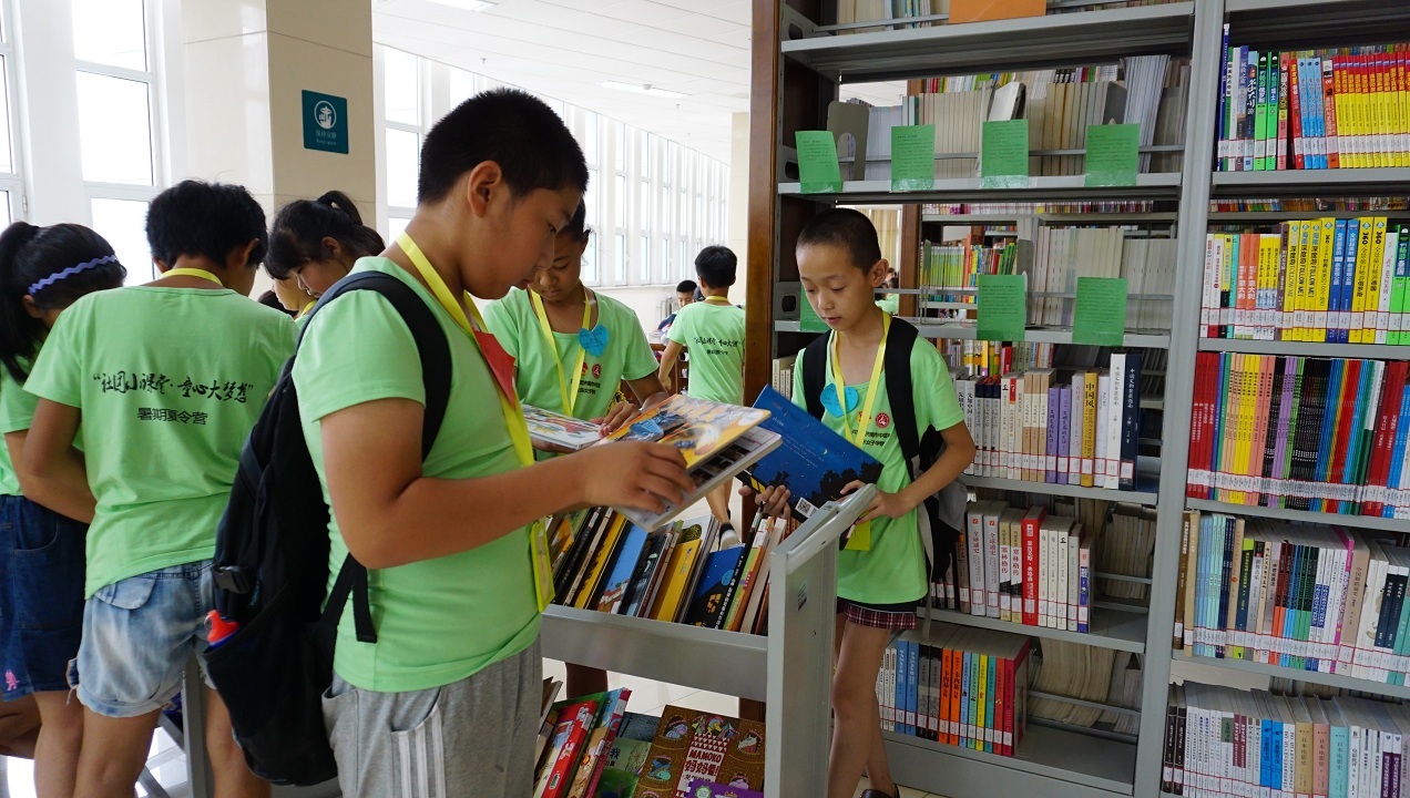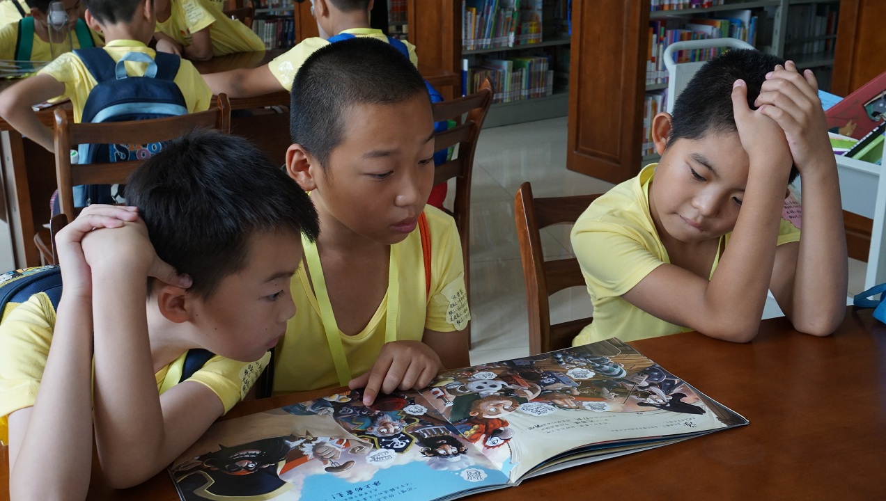 欢迎仪式上,图书馆副馆长宋军风对各位师生的到来表示热烈欢迎,并简要介绍了图书馆的基本情况,希望小读者们通过本次活动能汲取知识、收获智慧和快乐。仪式结束后,在图书馆老师的带领和讲解下,小读者们有序参观了各个图书借阅室、儿童绘本馆、自修室、电子阅览室、四库全书珍藏室、阅读聊吧、工具书库等馆室。参观过程中,小读者们为四库全书珍藏室的厚重和珍贵赞叹不已,被阅读疗吧里的图书和氛围深深吸引。每到一个馆室学生们都安静的穿行在书架当中寻找自己感兴趣的图书,找到后认真翻阅、爱不释手。图书馆丰富的藏书内容满足了小读者的需求,优质绘本更是吸引着他们或站在书架中、或倚书桌旁,或坐在小方凳上一起阅读,现场学习气氛浓厚。