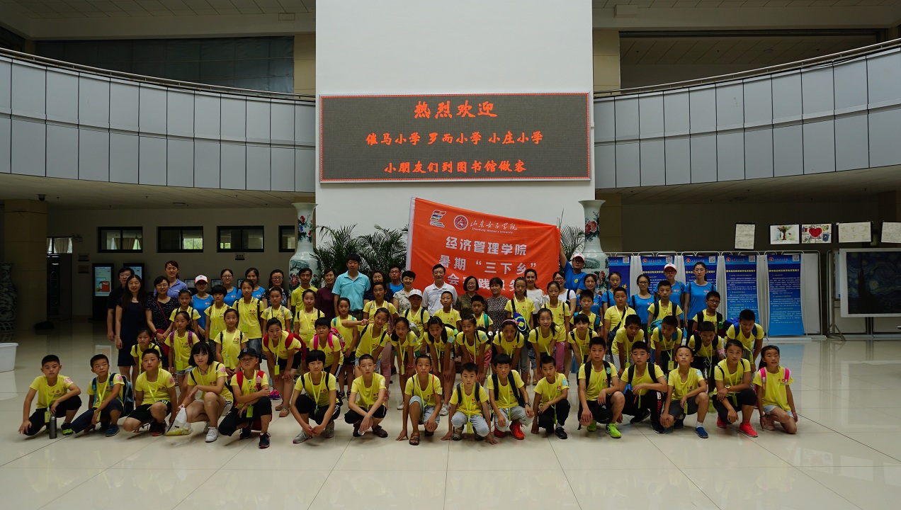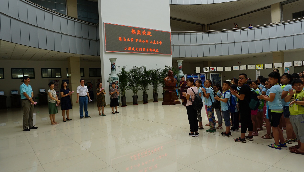 7月16日,来自济南市党家庄街道和陡沟街道的罗而小学、催马小学和小庄小学的147名学生在我校暑假支教同学的带领下,到我校图书馆参观。学校党委副书记王淑霞、副院长贺兴利、图书馆馆长朱海琳、经济管理学院党总支书记王娅、教育学院党总支书记田莉春、校团委书记王鲁出席欢迎仪式。仪式由图书馆副馆长宋军风主持。
