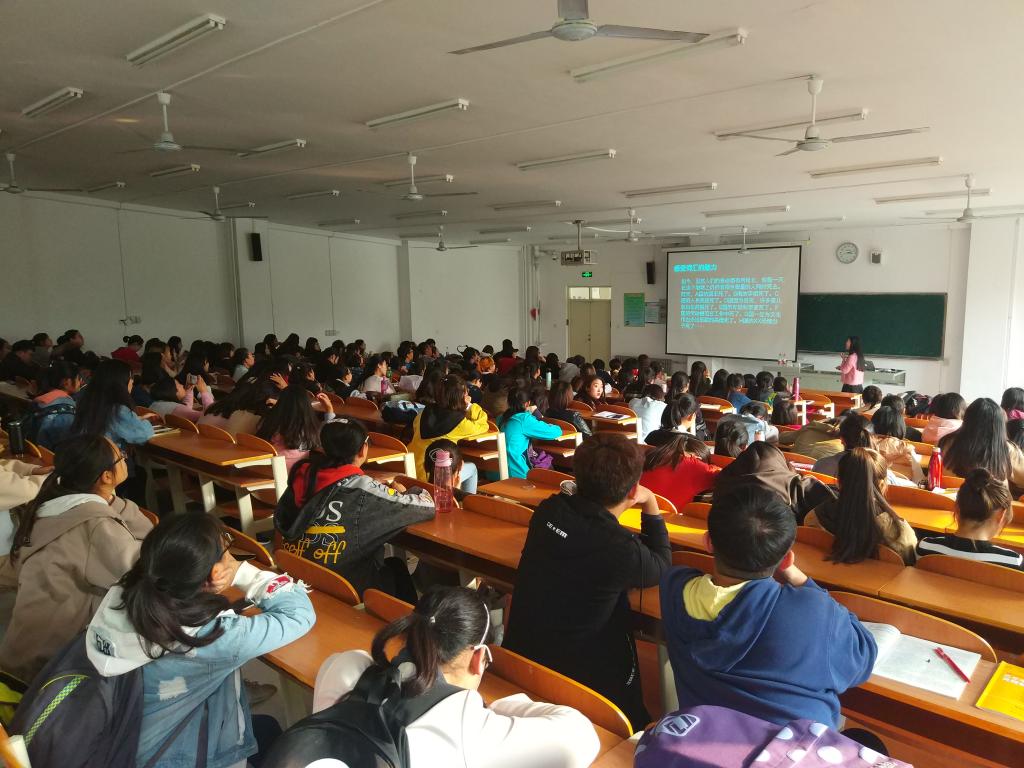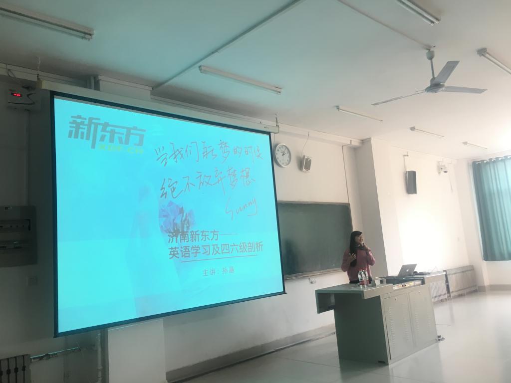 11月2日,由图书馆组织的新东方四六级考前指导讲座在博文楼110教室顺利举行。特邀嘉宾孙晶讲师来校做了题为“英语学习及CET-4剖析”的专题报告,听取讲座的有来自各年级、各学院的学生共150余人,会场气氛热烈。