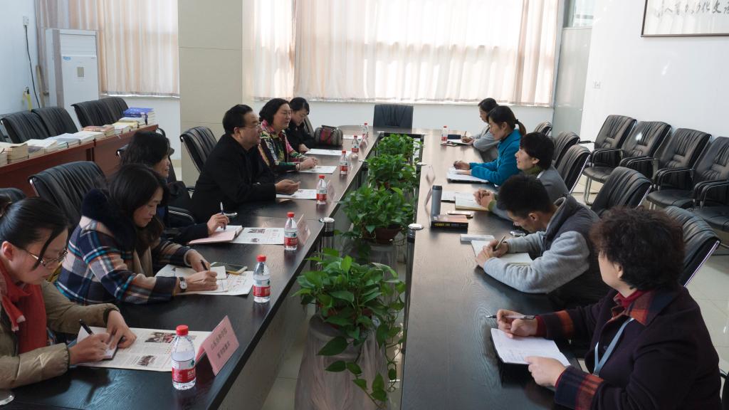 首先,双方在我校图书馆会议室进行了座谈。朱海琳馆长对苏馆长一行的到来表示欢迎,并介绍了我馆的总体情况以及资源建设、图书推荐、学科服务、特色库室情况。苏位智馆长对我馆的热情接待表示感谢,并就一些业务问题与我馆展开了交流。