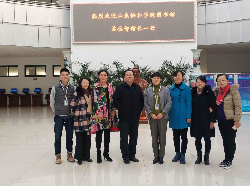 11月15日下午,山东协和学院图书馆馆长苏位智一行六人到我校图书馆参观交流。图书馆馆长朱海琳、副馆长宋军风等相关工作人员热情接待了苏馆长一行。