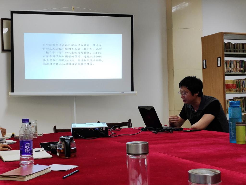 5月17日,图书馆学习型团队建设之六在图书馆A座206召开,此次会议由赵小敏馆长主持,开滨老师做了题为“大数据时代如何利用知识图谱进行科学研究”的报告。通过此次学习,与会全体馆员对利用知识图谱开展科研工作有了清晰的思路和全面认识。