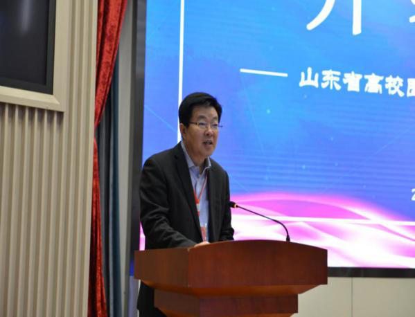 王志田代表山东省教育厅向图书馆界各位馆长表示热烈欢迎,他总结了近年来国务院对教育事业的政策支持和战略指导,指出了山东省高校图书馆工作存在的不足和今后工作目标。邢占军就新时代、新使命、新任务,新一届图工委如何发挥好“参谋咨询、指导引领、凝聚队伍、监督推动”的重要作用提出三方面建议。一是要积极贯彻教育部新版《普通高等学校图书馆规程(修订)》的精神和要求。二是开展图书馆工作要紧紧围绕当下高校发展的主战略、主旋律和主要任务。三是山东大学图书馆作为全省高校图书馆的龙头,要积极落实和践行山东大学“服务地方”发展战略。