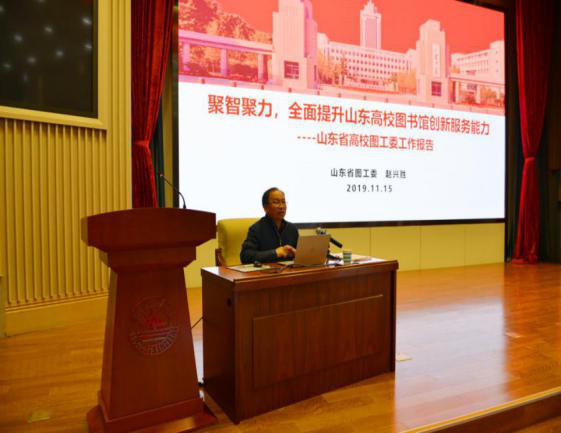 11月15日,由山东省高等学校图书情报工作委员会主办,山东大学图书馆承办的“2019年山东省高校图书馆馆长工作会议”在山东大学中心校区召开。教育部高校图指委主任、北京大学校务委员会副主任、图书馆馆长陈建龙出席开幕式并作专题讲座。教育厅高教处处长王志田,山东大学校长助理、人文社科研究院院长邢占军出席开幕式并致辞。我馆赵小敏、庞璐参加了此次会议。