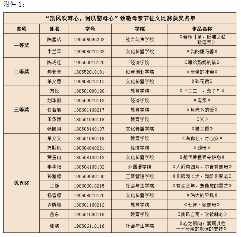 随着评选结果的发布,此次活动圆满结束。本次征文活动,唤起了女院学子埋藏在内心深处的对母亲的感恩情怀,让同学们进一步懂得母亲的伟大,懂得感恩母爱,有利于弘扬孝道文化,传承中华美德。参赛同学纷纷表示,在牢记父母养育之恩的同时,要学会感恩,学会回报身边的人,回报那些帮助过你的人,同时帮助需要帮助的人。