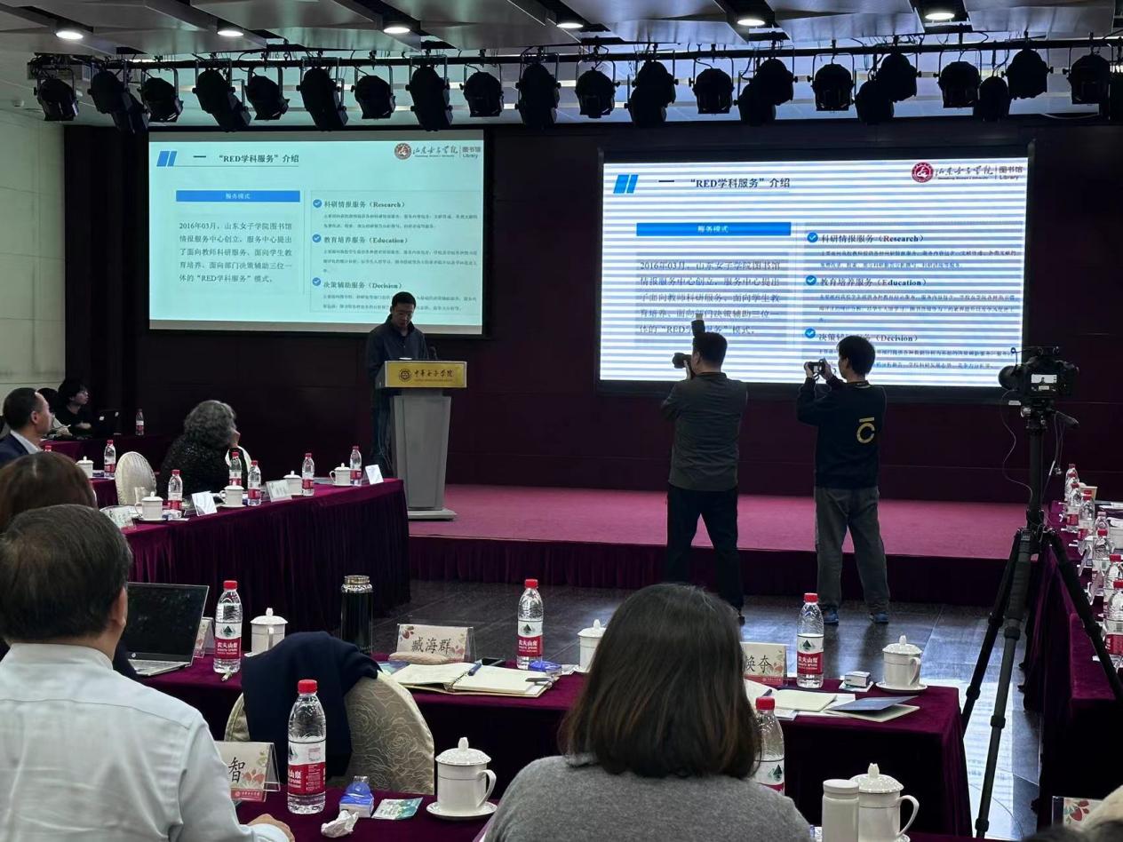 会上,学校图书馆馆员开滨代表图书馆,做了题为《山东女子学院图书馆“RED学科服务”案例分享》的交流发言。他从科研情报服务、教育培养服务以及决策辅助服务三个维度,全面而深入的分享了学校图书馆近年来在学科服务方面的主要做法和成效,受到与会人员的一致认可。