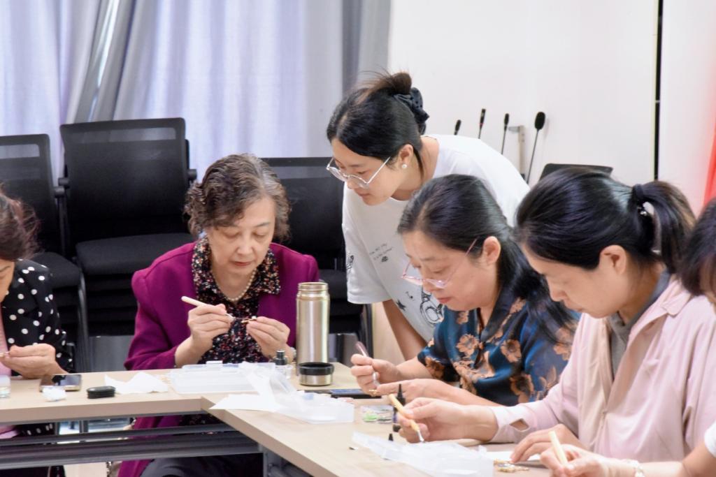 活动伊始,由带队老师向居民介绍了掐丝珐琅的历史渊源与文化价值。从明清时期的宫廷技艺,到如今被列入非遗名录的文化瑰宝,让居民对这项传统工艺有了初步认知,也激发了大家动手实践的兴趣。