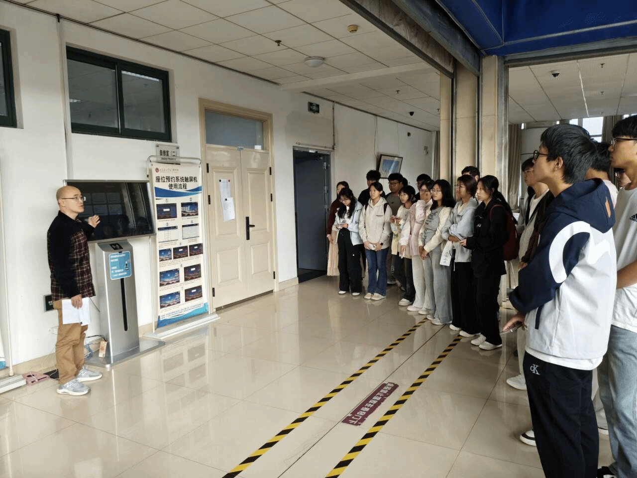 作为大学生拓展知识边界、获取学术资源的核心平台,图书馆对新生适应大学学习模式至关重要。此次入馆教育以“精准引导、高效赋能”为核心目标,创新采用“实地沉浸式参观+分区域细致讲解”的组合模式,通过小批量、多批次的科学组织形式,确保每一位新生都能扎实掌握图书馆的使用方法。室外大厅讲解聚焦馆情概况、资源总览、检索系统操作及自助借还设备使用技巧;室内讲解则重点解读索书号识别、图书定位、座位预约、报刊阅览及自修室使用规范,全方位助力新生高效用馆。