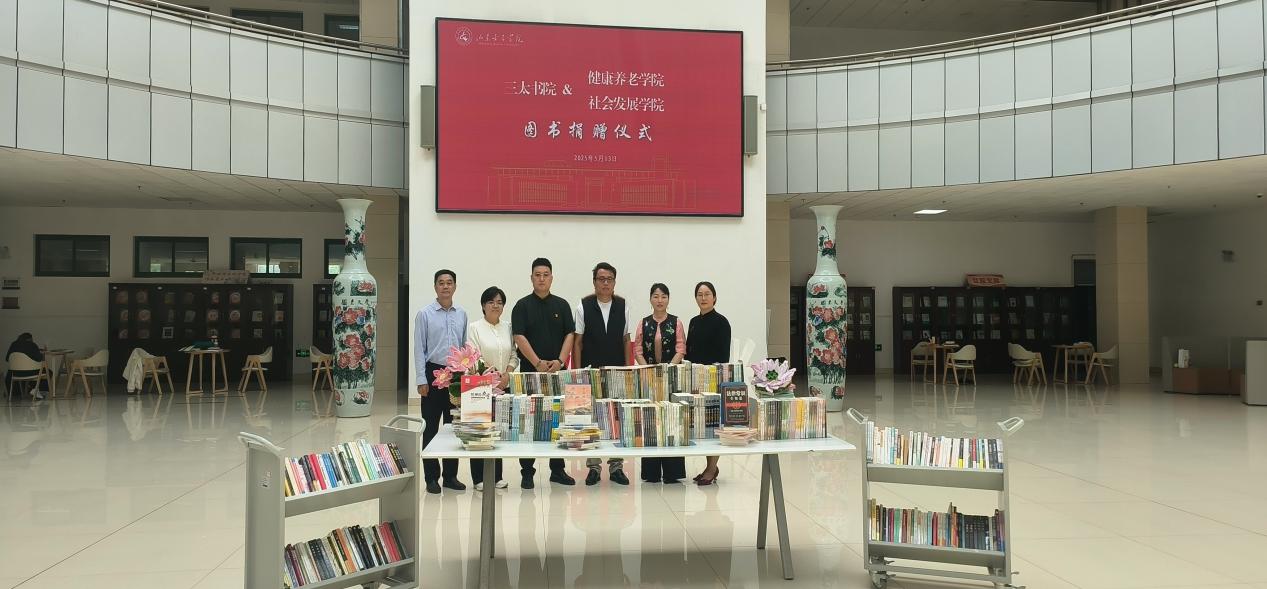 5月13日下午,健康养老学院、社会发展学院联合三太书院向学校图书馆捐赠社科类图书1500余册。捐赠仪式于图书馆一楼大厅举行,两院负责人、师生代表及三太书院负责人共同见证这一文化传承的重要时刻。图书馆负责人代表校方接受捐赠,并向捐赠单位颁发荣誉证书。